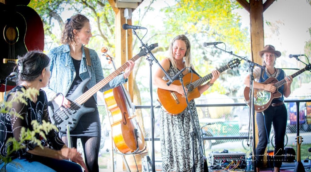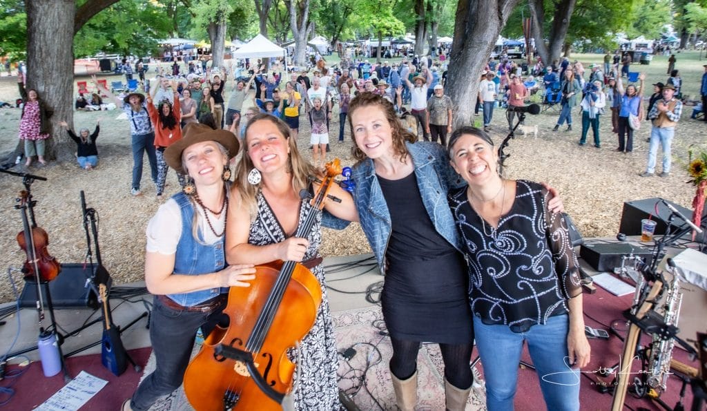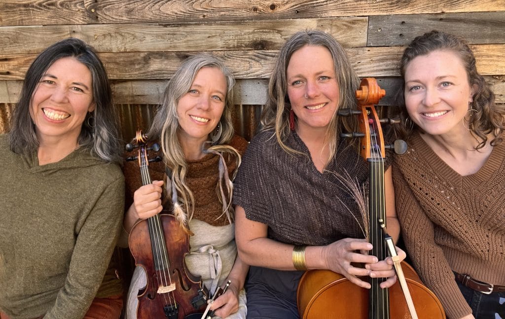 "With their honeyed harmonies and solid groove, Mama Lingua warms the crowd like a good draught of elderflower mead under a full moon. Original folk and world tunes with guitar, violin, cello and percussion."